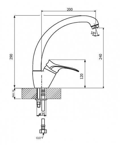 - установочный диаметр отверстия для монтажа - 35 мм