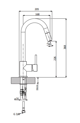 - высокий поворотный выдвижной излив 168 мм