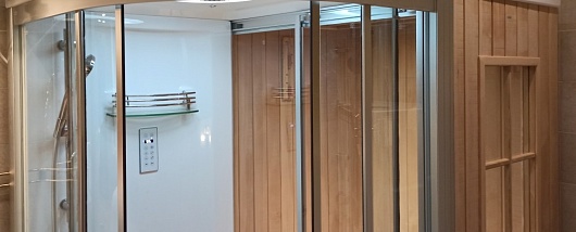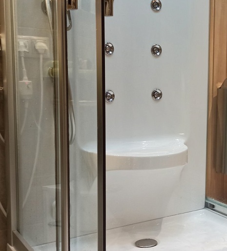 - Двери в душевой : раздвижные (с магнитами металлическими).