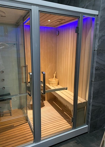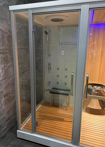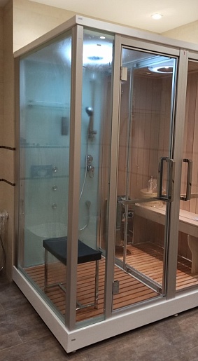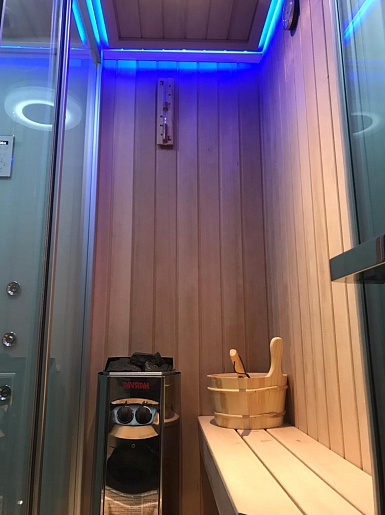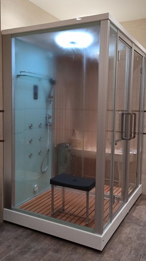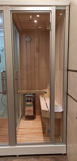 - Дверь между сауной и душем: раздвижная.