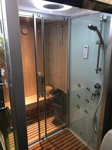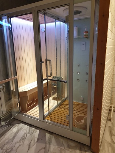 - Двери в душевой и сауне: распашные (с магнитами металлическими).