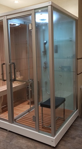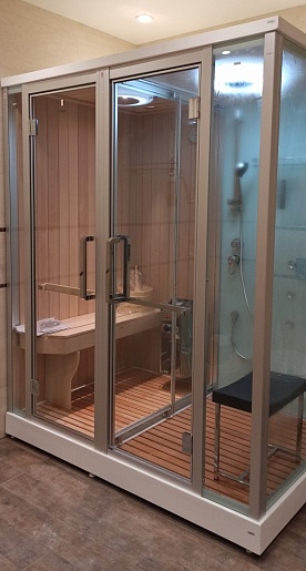 - Дверь между сауной и душем: раздвижная.