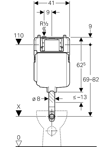 - Подвод воды R 1/2", совместимый с MF, со встроенным угловым запорным вентилем и маховичком