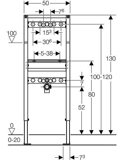 - глубина опорных площадок подходит для монтажа в U-образные профили UW 50, UW 75 и в направляющие профили Geberit Duofix