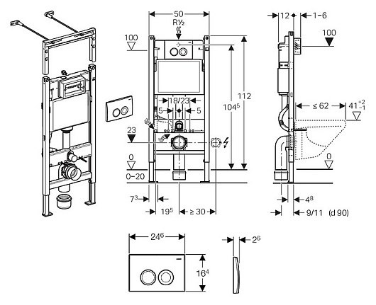 Geberit Система инсталляции Duofix Delta Платтенбау 458.122.11.1 4 в 1 с кнопкой смыва