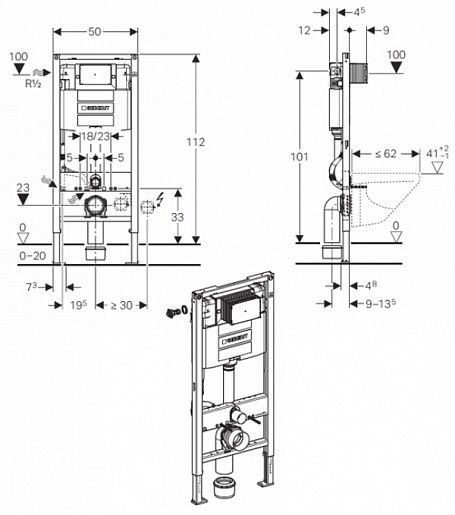 Geberit Система инсталляции Duofix Omega 111.060.00.1 для подвесных унитазов