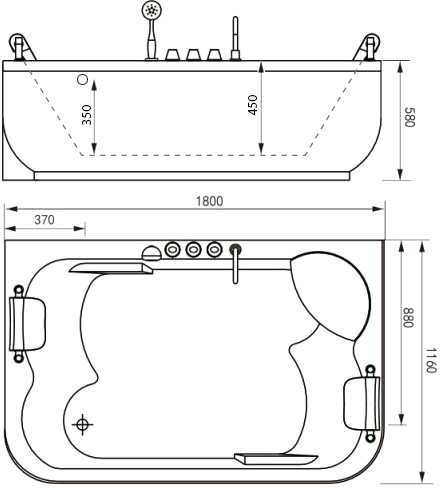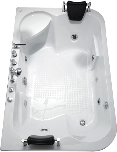 Комплектация: ванна, каркас, слив-перелив, смеситель, душевая лейка, подголовник.