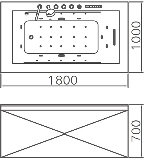 Комплектация: ванна, каркас, слив-перелив, смеситель каскадный, душевая лейка, подголовник, система гидромассажа, каскадный массаж.