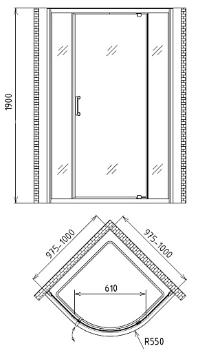 - одна распашная дверь (универсальный монтаж)