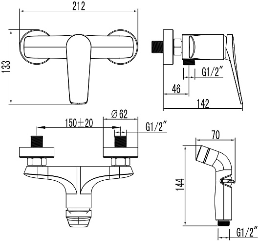 Гигиенический душ со смесителем Lemark Bronx LM3718GM.