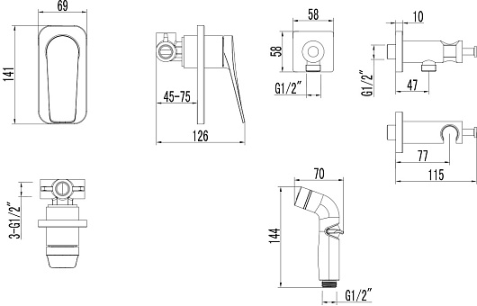Lemark Гигиенический душ Bronx LM3719BL со встраиваемым смесителем черный