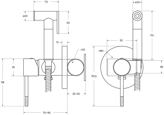- Лейка гигиенического душа.