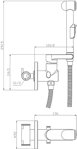 Гигиенический душ со встраиваемым смесителем Rossinka X25-57.