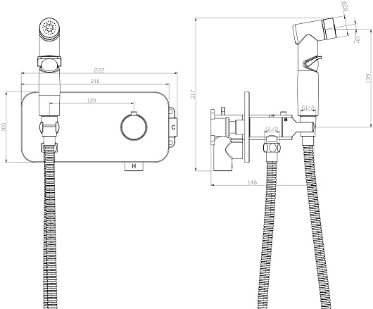 Гигиенический душ со встраиваемым термостатическим смесителем Rossinka X25-59.
