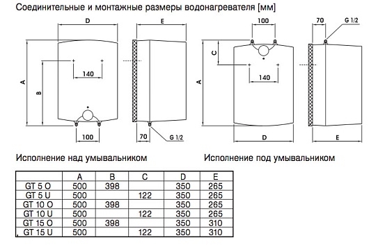 - подсоединение G 1/2"