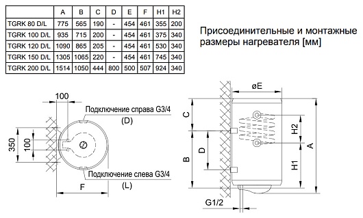 - Присоединение к теплообменнику G 3/4