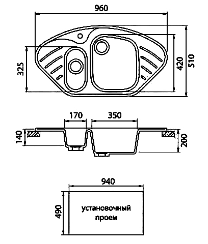 - комплектация: сифон, сливная арматура с нержавеющим клапаном