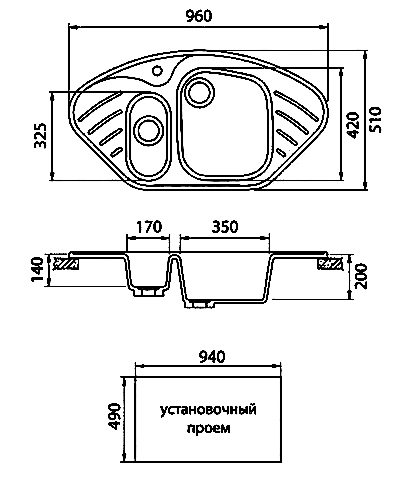 - комплектация: сифон, сливная арматура с нержавеющим клапаном