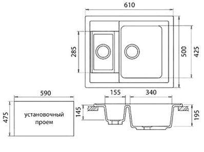 Granfest Мойка кухонная Quadro GF-Q610K Черный