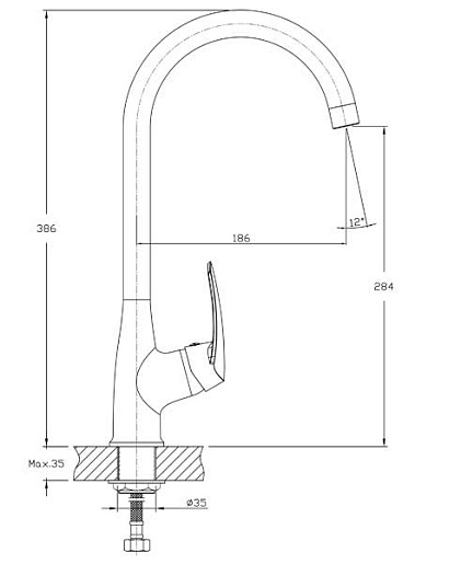 Высота излива, мм: