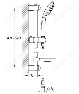- GROHE QuickFix® (регулируемое расстояние между настенными креплениями штанги позволяет использовать для монтажа уже имеющиеся отверстия в стене)