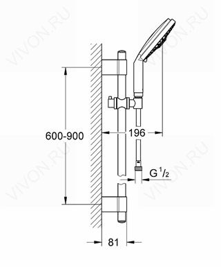 - GROHE QuickFix® (регулируемое расстояние между настенными креплениями штанги позволяет использовать для монтажа уже имеющиеся отверстия в стене)