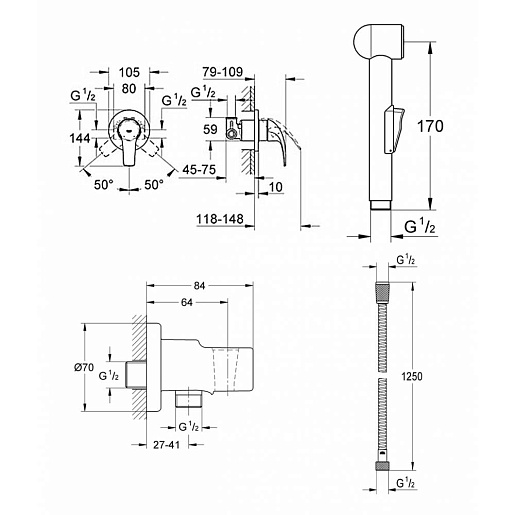 Grohe Гигиенический душ BauCurve 123072 комплект