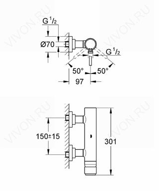 - отвод для душа снизу 1/2" со встроенным обратным клапаном
