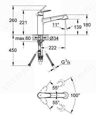 Grohe Смеситель "Eurodisc Cosmopolitan 32257002"
