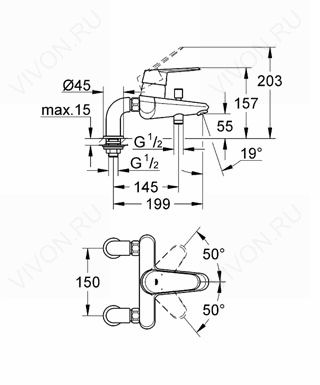- автоматический переключатель: ванна/душ