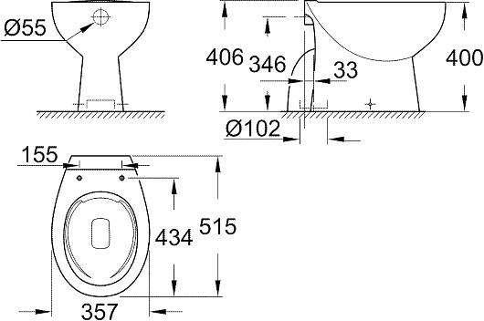 Grohe Унитаз приставной Bau Ceramic 39431000 безободковый