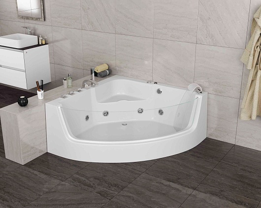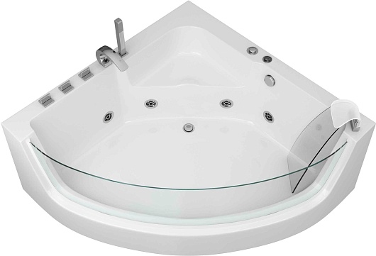 Комплектация: ванна, каркас, смеситель с душевой лейкой, система гидромассажа, подголовник, сифон.