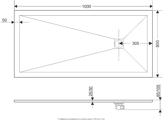 - Технический уклон поддона для стока воды.