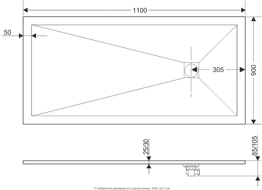 - Технический уклон поддона для стока воды.