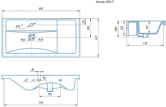 Мебельная раковина Grossman Фостер 80 R - арт. 30469.