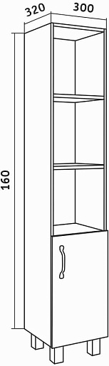 - 1 распашная дверка, 3 открытые полки.