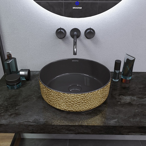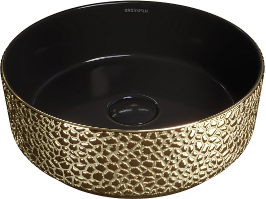 Grossman Раковина накладная Color 35.5 GR-5010GBL золото с текстурой кожи крокодила/черная