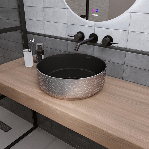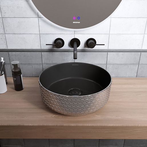 Grossman Раковина накладная Color 35.5 GR-5010SBR серебро/черная