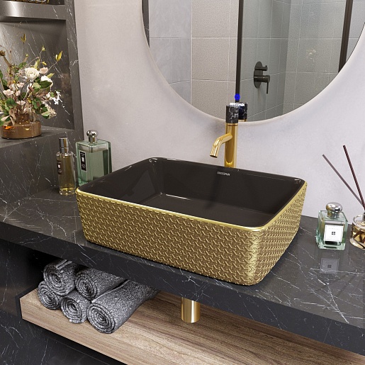 Grossman Раковина накладная Color 48 GR-3016GBR золото/черная