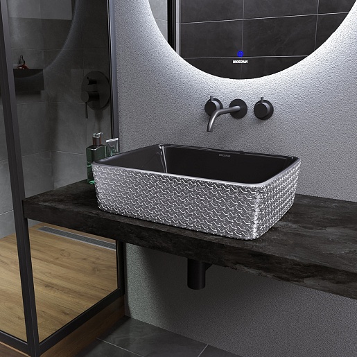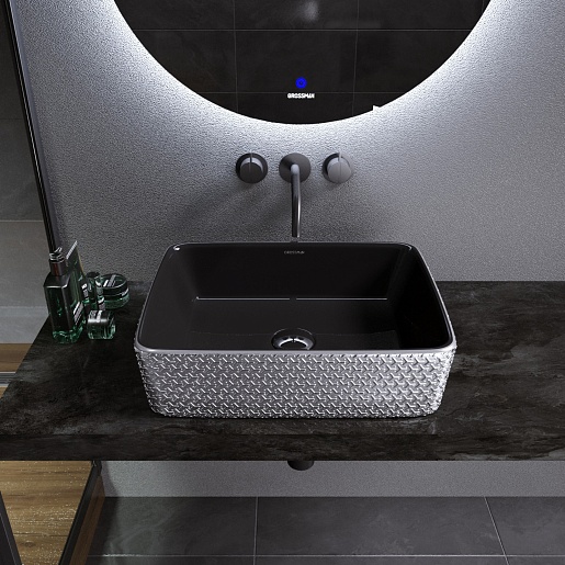 Grossman Раковина накладная Color 48 GR-3016SBR серебро/черная