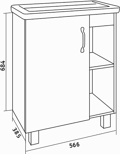 - 1 дверца, 2 открытые полки.