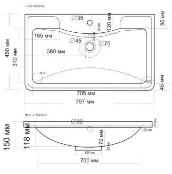 - Раковина из искусственного камня со слив-переливом.
