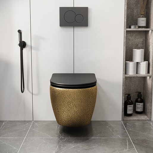 Grossman Унитаз подвесной Color GR-4411GBLS золото/черный с текстурой крокодила