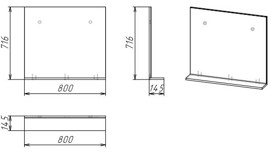 - Размеры (ШxВxГ): 800x716x145 мм.