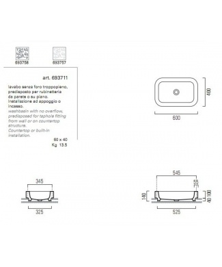 GSI Накладная раковина Traccia 6937011 60 см
