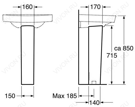 - Габариты (ШхГхВ): 150x170x715 мм.