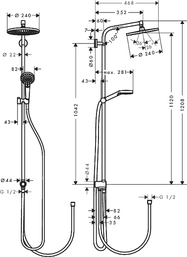 Душевая система:- верхний душ Crometta S 240