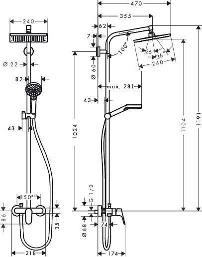 Hansgrohe Душевая система "27284000 Crometta E 240 1jet Showerpipe"