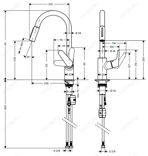 - излив 220 мм