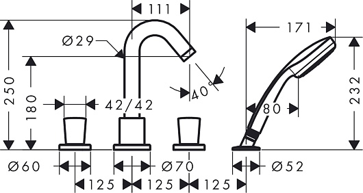 Hansgrohe Смеситель Logis 71314000 на борт ванны